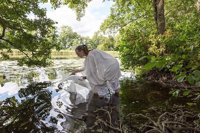 My journey with paper land art began as a physical manifestation of my internal state, following the loss of my child. Immersing myself within the elements and natural forces transformed both my creative practice and my grief. As a performer and shamanic practitioner, I engage with the stories of land, people and nature, exploring the connections and transformational qualities of these relationships.