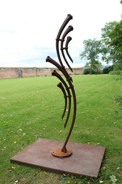 “This sculpture is a coalition of two interests: the subtle curves that can be found within the female form and the geometric patterns that occur naturally within plants. The processes within Blacksmithing allowed me to produce these dynamic shapes, which I was able combine in a repetitive arrangement in order to create a piece that has a changing aesthetic when viewed from different viewpoints and perspectives. This sculpture aims to look like it belongs in either a natural or manmade environment.”