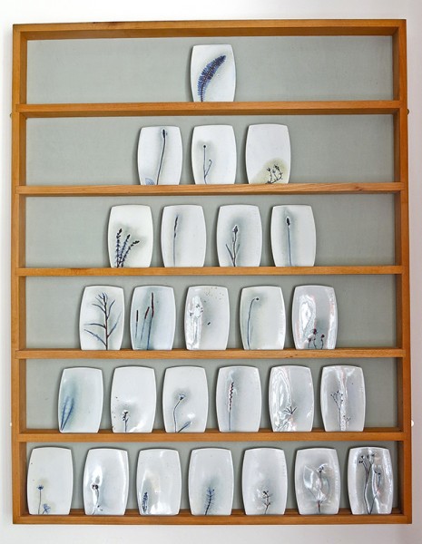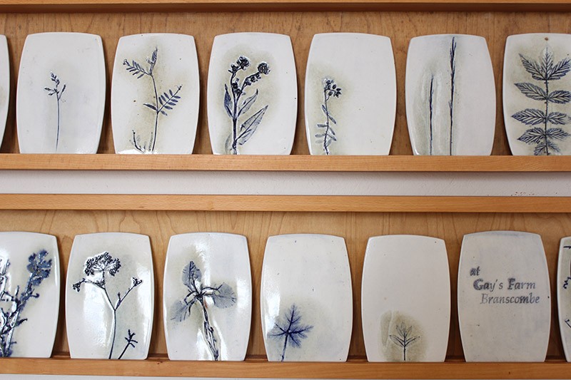 My work aims to reveal the stories hidden in the landscape around us and beneath our feet. The work on show from The Three Meadows project celebrates the diversity of old hay meadows, walking across three different farms in Devon gathering and impressing into clay all the plant species found on one day in June.