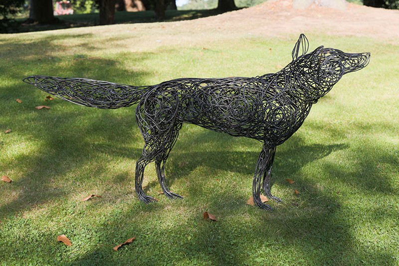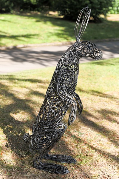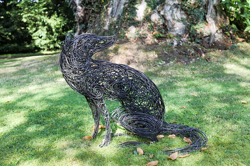 What started in childhood as a wish to draw the domestic, farm and wild animals around me evolved into a desire to learn the skills to realise three dimensional portrayals of these creatures. Using the delicate yet unforgiving medium of steel wire, and occasionally live and dry willow, I create energetic, linear sculptures which echo and build on my drawing practice. My pieces sit happily both indoors and in the landscape.